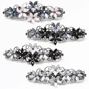 [Quality Materials] - These elegant hair clips are made of pretty rhinestone, faux crystal and metal alloy, Material-good hardness, good wear resistance, not easy to deform, durable and will not fade, sparkle and look very exquisite.The alloy clip holds the hair firmly and at the same time it is comfortable to wear and will not pull the hair.
