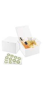 【 Sturdy White Gift Box 】This large gift box is made of high-quality, thick and sturdy food-grade paper. Safe, non-toxic and tasteless, it is very suitable for storing handmade biscuits and other baked foods, or small cups, small wine glasses, aromatherapy, candles, bath bombs, soap, perfume, jewelry, etc.