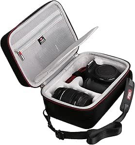 This hard carrying traveling case is deigned for Canon EOS Rebel T7 / T8i / T5 / R50 / R100 DSLR Camera with 18-55mm Lens