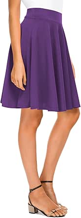Urban CoCo Women's Basic Midi Skirt Versatile Stretchy Flared Casual High Waisted Skirt