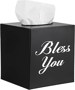 Sumnacon Tissue Box Cover Square, Bless You Tissue Holders, Decorative Tissue Box Holder Open Bottom, Cube Metal Tissue Cover for Bathroom, Bedroom, Living Room, Office, Tabletop, Gift Option, Black