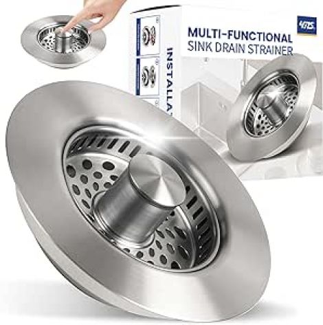MULTI-FUNCTIONAL DESIGN: 5-in-1 sink strainer combines drain stopper, food catcher, and odor filter in one convenient kitchen accessory