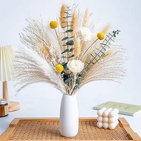 pampas grass decor requires no maintenance or watering, saving your money, and time. Your living space your way! Are you tired of dull, boring home decor? Spice things up with a Pampas bouquet! This trendy and stylish ornamental grass is the perfect way to add some personality and pizzazz to your space, adding a cozy and warm feeling while still looking stylish.