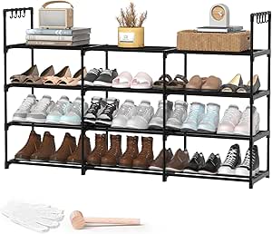 【Large Capacity】 Effortlessly accommodate 24-30 pairs of various footwear, from casual shoes to boots, with our 3 rows and 4-tier structure, designed for the shoe enthusiast with an extensive collection.