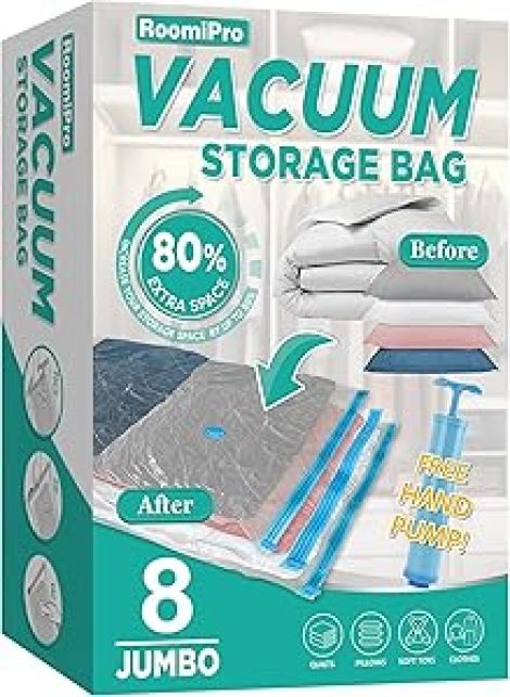 Space Saver Vacuum Storage Bags, 8 Jumbo Vacuum Sealer Bags with Pump, Storage Vacuum Sealed Bags for Clothing, Comforters, Blanket Storage, Bedding