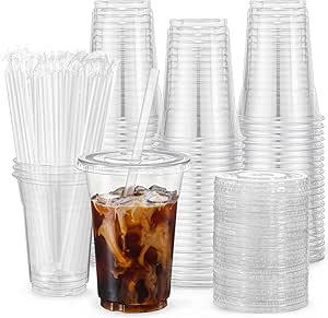 100 SETS IN PACK: The set contains 100 sets of cups, enough for large uses or as a reserve for homemade coffee. Each one is 16oz of capacity, which is the proper size for daily, and tapered shape would fit perfectly in cupholders. It also comes with secure lids and individually wrapped straws, no extra purchase needed.