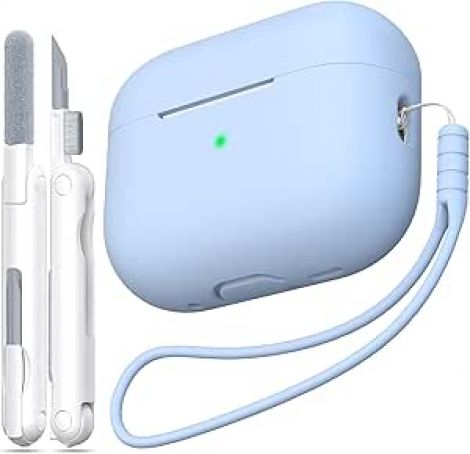 for AirPods Pro 2nd Generation Case Cover, Military Grade Anti-Fall Soft Silicone Shock-Absorbing for AirPods Pro Case Skin Touch with Keychain and Cleaning Kit, Front LED Visible, Sky Blue