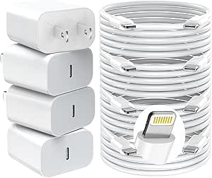 iPhone Charger Fast Charging,20W PD USB C Wall Charger 4 Pack with 6FT Fast Charging Cable - Fast Charger for iPhone 14/14 Pro Max/13/13 Pro/12/12 Pro/11/11 Pro/XS, iPad