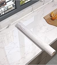 MULTIPLE USES: Marble self-adhesive wallpaper can be applied to any smooth, dry surface, suitable for beginner installation and disassembly. Suitable for kitchen countertops, tabletops, shelves, bathrooms, bedside tables, bookcases, doors and walls etc. Used to create a new appearance and repair existing surfaces, durable and fadeless.