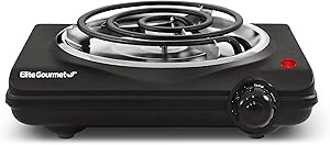 Elite Gourmet ESB100B Countertop Single Coiled Burner Electric Hot Plate, Temperature Control, Indicator Light, Easy to Clean, Black