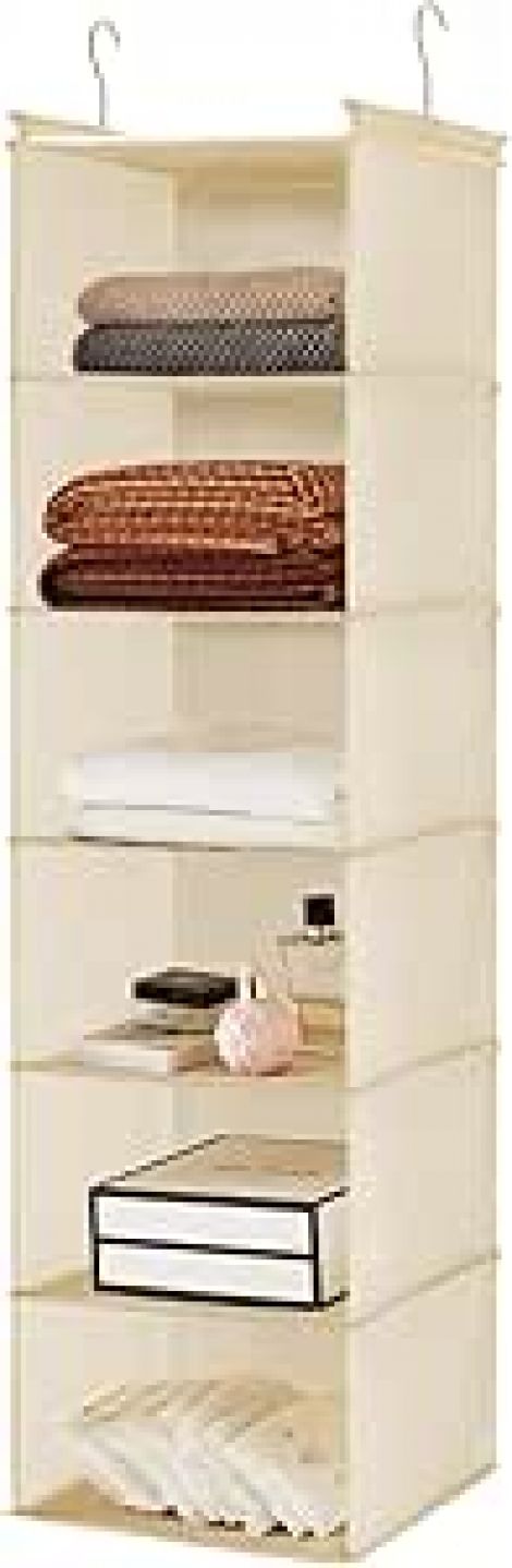 MAX Houser 6 Tier Shelf Hanging Closet Organizer, Cloth Hanging Shelf with 2 Sturdy Hooks for Storage, Foldable (Beige)