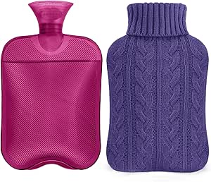 samply Hot Water Bottle with Knitted Cover, 2L Hot Water Bag for Hot and Cold Compress, Hand Feet Warmer, Ideal for Menstrual Cramps, Neck and Shoulder Pain Relief, Purple