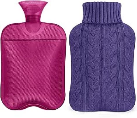 samply Hot Water Bottle with Knitted Cover, 2L Hot Water Bag for Hot and Cold Compress, Hand Feet Warmer, Ideal for Menstrual Cramps, Neck and Shoulder Pain Relief, Purple