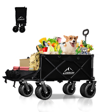 EXTRA LARGE CAPACITY - DURABLE COLLAPSIBLE WAGON: The collapsible wagon has an expansion size of 57.56"x 17.72"x 37.8" (L*W*H) and load up to 350LBS, which can carry all the goods your family needs for outdoor camping