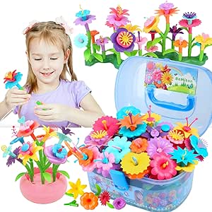 BEMITON Flower Building Toy Set for Girls, Best Birthday Gifts for 3 4 5 6 7 Year Old Kids, Arts and Crafts Kit for Toddlers, STEM Activities and Gardening Pretend Playset, 148 pcs