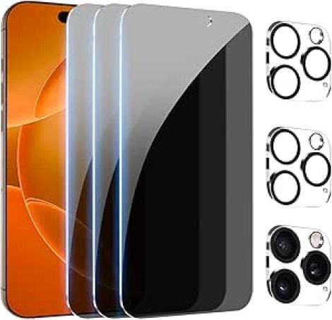 PEHAEL 3+3Pack for iPhone 16 Pro Max Privacy Screen Protector with Camera Lens Protector Full Coverage Anti-Spy Tempered Glass Film 9H Hardness Easy Installation Bubble Free [6.9 inch]