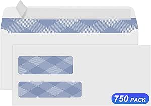 750#8 Self Seal Business Envelopes, PANDRI No.8 Double Window Design for Business and Quickbooks Check(invoice not fit), Documents Secure Mailing - Number 8 Size 3 5/8 X 8 11/16-24LB