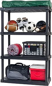 IRIS USA 4-Shelf Heavy Duty Plastic Storage Shelves, 600lb Capacity, 56"H x 36"W x 18"D, Large Modular Shelving Unit Storage Organizer for Garage, Home, Warehouse & Gym, Storage Rack - Black