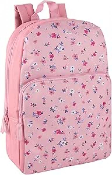 PINK FLORAL BACKPACK: Fresh flowers dot this pretty pink 17-inch girls backpack that has plenty of room for folders, binders, notebooks, and other supplies