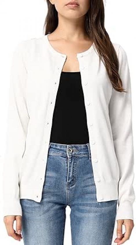 GRACE KARIN Women's Long Sleeve Button Down Crew Neck Classic Sweater Knit Cardigan