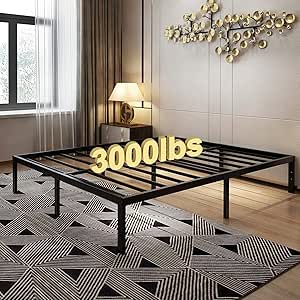 ✔ STRUCTURE:10 pounds heavier than other manufacturers. Reinforced Steel Slats Support, Seamlessly Welded Tightly Structure, makes the whole frame more Safe & Sturdy, withstand 3000 pounds of static pressure and prevents structural twisting.