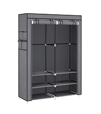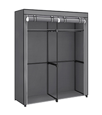 [Strength to Support] With 0.6-inch dia. metal tubes and 120 g/m² non-woven fabric, this wardrobe will assure its sturdiness and durability. The hanging rail holds up to 33 lb and each shelf 11 lb