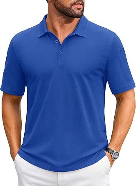 CRYSULLY Polo Shirts for Men Quick Dry Performance Short Sleeve Classic Fit Tactical Pique Jersey Golf Shirts