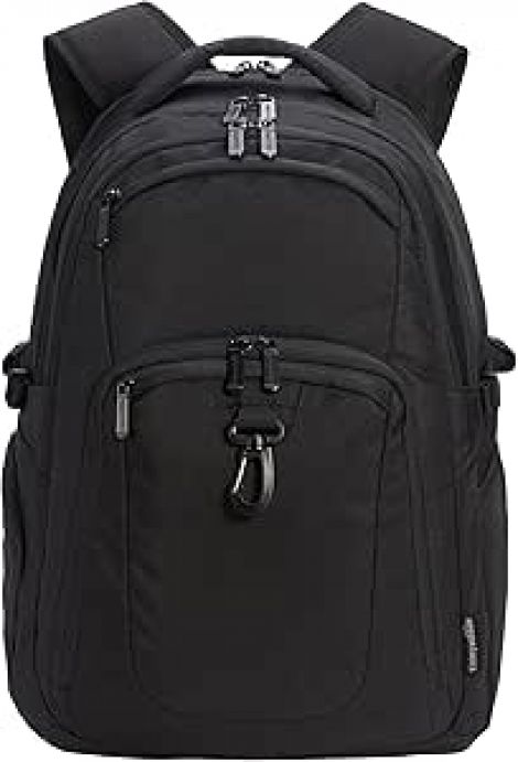 Breathable air mesh panel at the back and deep air channels create maximum airflow between your and the pack. It has padded s-shaped mesh and padded shoulder straps for shoulder comfort; a chest strap with an adjustable buckle ensures the backpack fits you snug; and a foam padded top handle for a long time carry on.