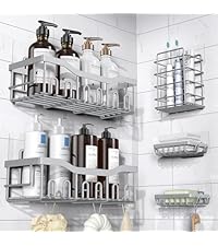 5 Hanging Shower Organizer Set for Sufficient Bathroom Storage Space:The bathroom organizer comes with 5 pieces for different uses, including 2 shower caddies, 2 soap holders,1 toothbrush holder and 5 adhesives. Accommodate wash supplies or cooking seasonings easily with large capacities to make full use of space and facilitate your life; ideal for the dorm/bathroom/kitchen/toilet/tool room.Please feel free to contact us if you find any missing parts in the package or need additional part,such as missing adhesive and missing shelf.Our team will solve your any problem any time.