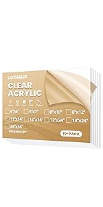 Package Contents: Each package includes 10 pieces of acrylic sheets 5x7" (13 x 18cm) - 0.043" (1mm thick). Protective films are on both sides of the sheet to prevent scratching. Simply remove the protective films before use.