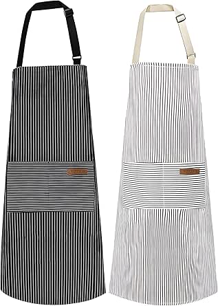 2 Pack Apron, Cooking Kitchen Aprons, Adjustable Bib Apron with 2 Pockets for Men Women Chef Apron