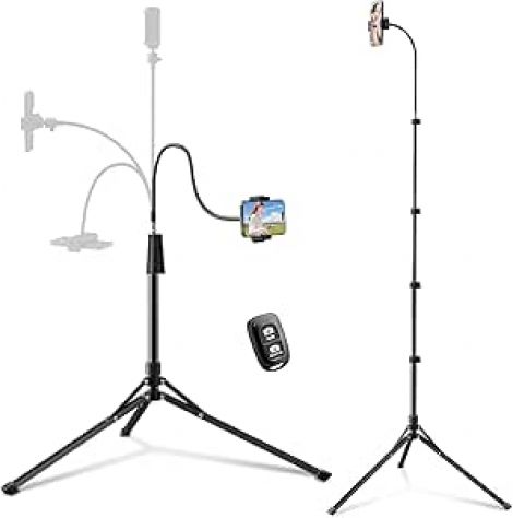 Eicaus 92’’ Tall Cell Phone Tripod Stand with 16.5’’ Flexible Gooseneck and Remote, Overhead Tripod with Adjustable 360°Ball Head & Phone Holder for iPhone 15 Pro Max/Plus/14/13/12/11, Android