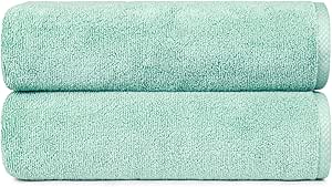 Amazon Basics 100% Cotton Quick-Dry Lightweight Moisture Absorbing Bath Towel, 2-Pack, Seafoam Green, 54" x 30"