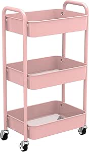 CAXXA 3-Tier Rolling Metal Storage Organizer - Mobile Utility Cart with Caster Wheels, Pink