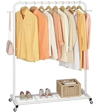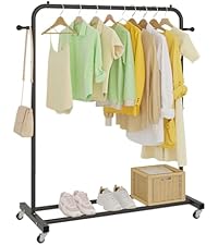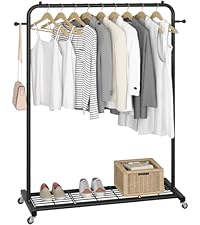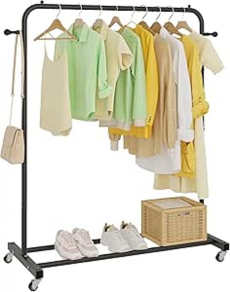 Sywhitta Clothing Rack on Wheels with Storage Shelf & Sturdy Metal Frame, Retail Clothing Rack for Hanging Clothes, Coats, Skirts,Space-Saving Mobile Organizer for Closet, Bedroom, Laundry Room, Black