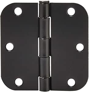 Amazon Basics Sturdy Rounded 5/8 Radius Interior Door Hinges, 3.5" x 3.5", 18 Pack, Matte Black