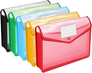 Go&Fan 5 Packs Expanding File Folder,no dividers,File Wallet Document Folder,Plastic envelopes with snap Closure,Paper Organizer Folder with Lable Pocket (Colorful) Fit Letter/A4 Size