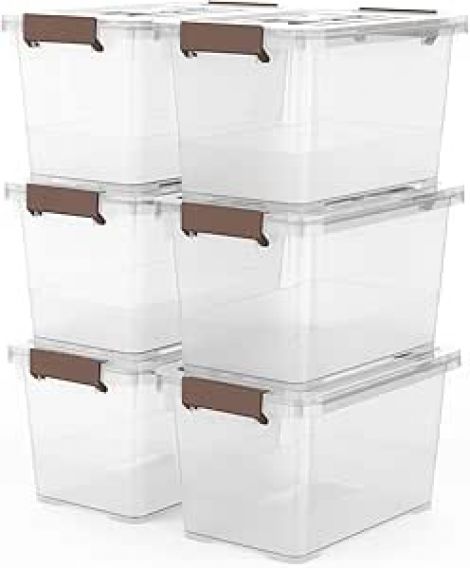 6-Pack Clear 7 Quart Storage Latch Bins, Plastic Stackable Outside size : 12"L x 8"W x 7"H