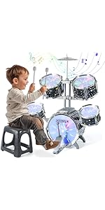 Drum Set with Lights:The toddlers drum set is built-in lights. And the colorful lights will shine to the kids' drumming. In this way, the kids can feel the rhythm through the multi-sensory senses of hearing, touching and seeing