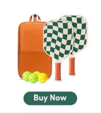 [Stylish & Portable] The unique green pickleball racket features wave check graphics, adding a cute and stylish touch. The set comes with a sling avocado bag, which includes a small front pocket for pickleballs, mobile phones, keys and other small items, along with internal hooks for easy attachment to court fences.