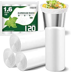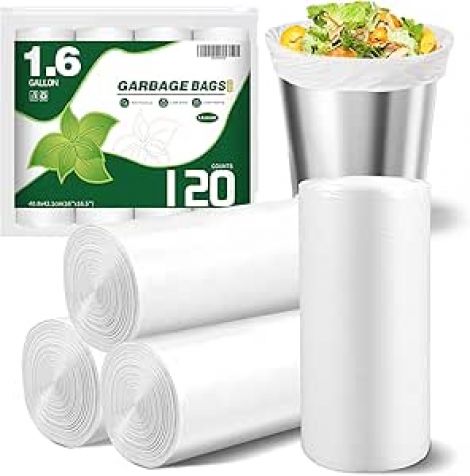 120 Counts 1.6 Gallon Small Trash Bags, Mini Garbage Bags, Fit 1.2-2 Gal, 4.5-8 Liter, Bathroom White Trash Can Bin Liners for Home Office Bathroom Bedroom