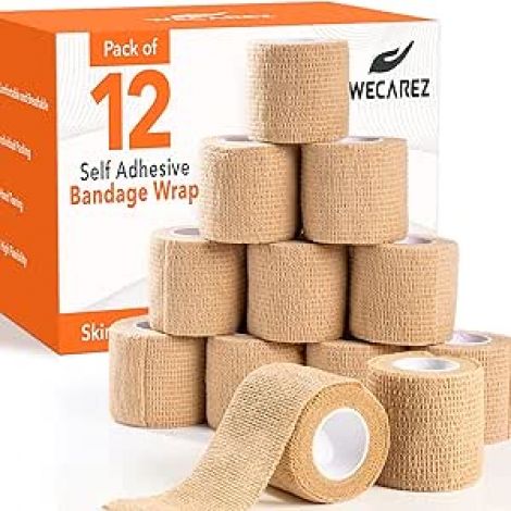 Self Adhesive Bandage 2 inch x 5 Yards – Pack of 12 Skin Colored Cohesive Bandage, Non-Woven Vet Wrap for Dogs & Pets –Breathable Elastic Bandage for Ankles & Joint Sprains