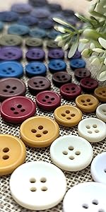 These buttons are made of Polyester and their surface is smooth, waterproof and durable. They are very resistantant to washing, ironing and dry cleaning. The colors are solid and will not fade over time. This buttons have sustainability features that is part of the Climate Pledge Friendly