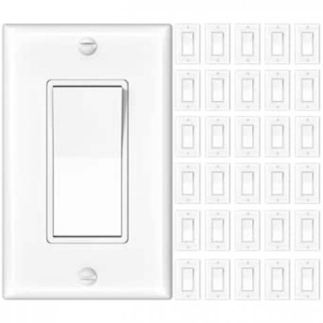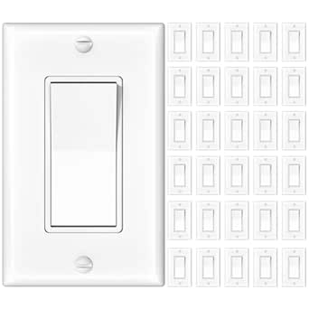 Amico 30 Pack Single Pole Light Switch with Wall Plate, UL Listed, 15A 120/277V, On/Off Rocker Paddle Interrupter Wall Switch, Grounding Screw, Residential Grade, Suitable for Home and Business, White