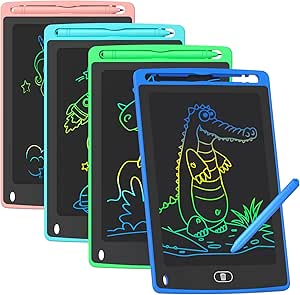 4 Pack for More Fun: Apply the newest flexible liquid crystal technology, brighter and clearer than most LCD writing tablet. Take pressure-sensitive technology, you can draw lines of different thicknesses through different pressure levels. Package includes 4 pack lcd writing tablet (Blue, Light blue, Green and Pink), free children's imagination and creativity.