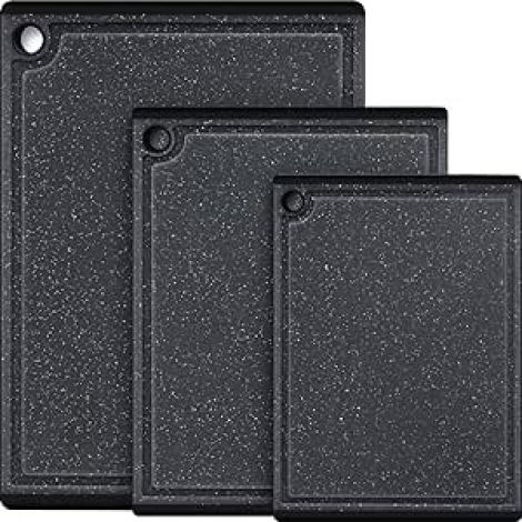 Plastic Cutting Boards for Kitchen, 3-Piece Large Cutting Board Set Dishwasher Safe Chopping Boards with Non-slip Feet and Juice Grooves, Kikcoin