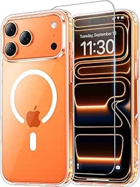 Temdan for iPhone 17 Pro Max Case Clear with Screen Protector, Compatible with Magsafe, Anti-Yellowing, Military-Grade Protection, Shockproof Slim Magnetic Phone Case Cover, Transparent