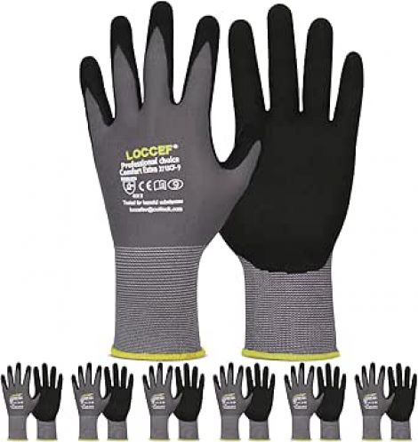 LOCCEF Work Gloves MicroFoam Nitrile Coated-6 Pairs,Seamless Knit Nylon Gloves,Gray Work gloves
