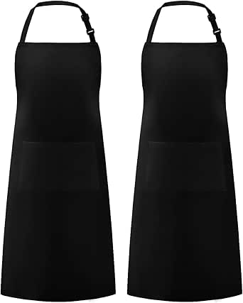 Syntus 2 Pack Adjustable Bib Apron Waterdrop Resistant with 2 Pockets Cooking Kitchen Aprons for Women Men Chef