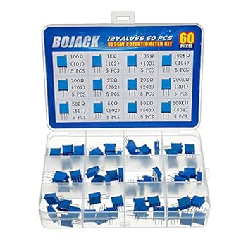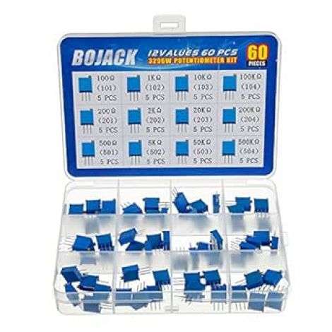 BOJACK 12 Values 60 pcs Variable Resistor 100 to 500K ohm 3296W Multiturn Trimmer Potentiometer Assortment Kit
